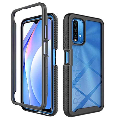 Liner Trasparente Cover per Xiaomi Redmi 9T, Rugged Custodia Full Body Antiurto Rigida PC Soft TPU Sottile Bumper Silicone Protettiva Case per Xiaomi Redmi 9T - Nero