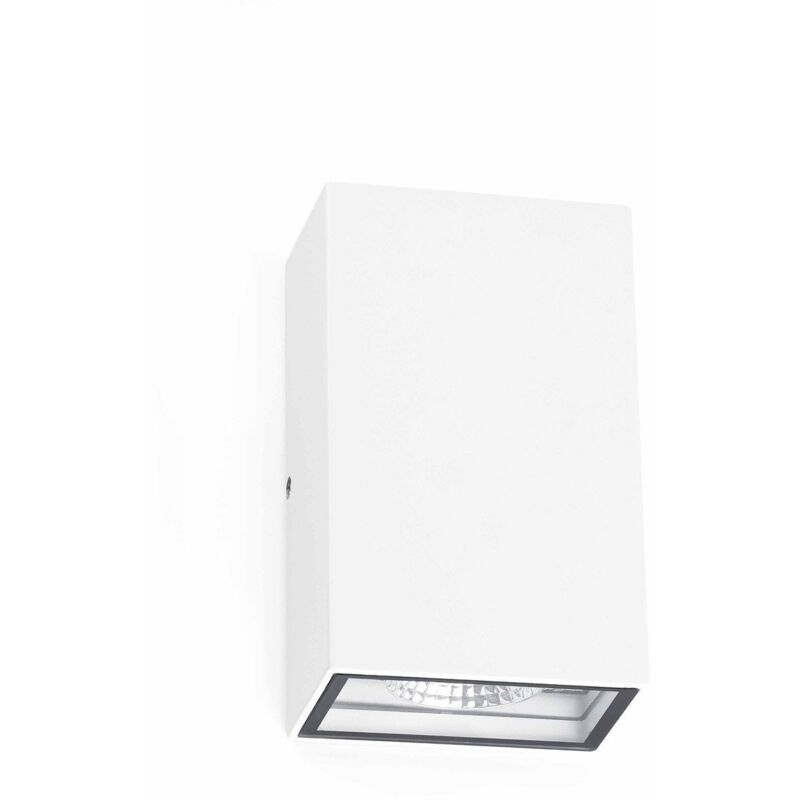 Aplique para exterior blanco mate, modelo LING de FARO. Se puede fijar en pared. La fuente de luz incluida es HIGH POWER LED 12W 4000K 630Lm. Fabricado en aluminio y acabado en blanco mate. Dispone de una protección IP54
