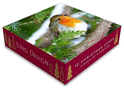 Ling, 12 biglietti di Natale con pettirosso, 3 disegni. With All Best Wishes for a Very Happy Christmas".