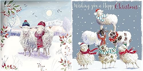 Ling Design Scatola di 20 biglietti di Natale artistici di beneficenza - "Torre di pecore e pecore in cappelli" - 20 biglietti di auguri artistici, 10 pezzi ciascuno di 2 disegni