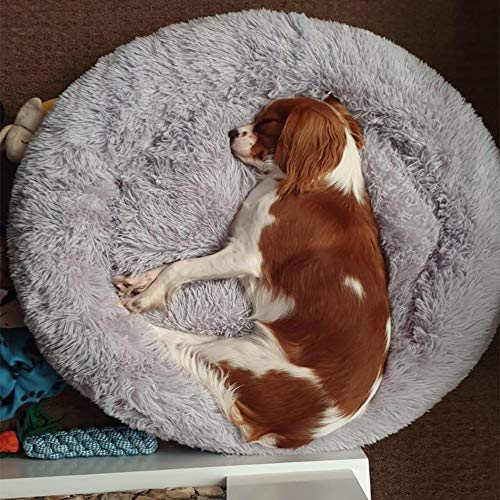 LINGHAN Cuccia Cane, Letto Rotondo per Cani Antistress Ciambella Cuscino Pelosa Caldo Invernale per Cani Gatti, Lettino Lavabile Calmante per Animali Domestici XL-diámetro 100 CM, Grigio chiaro
