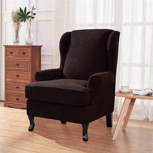 LINGKY 2-Pezzi Spandex Copripoltrona con Orecchie Elasticizzato Copripoltrona 1 Posto Poltrona Protettiva Universale (Marrone)