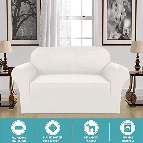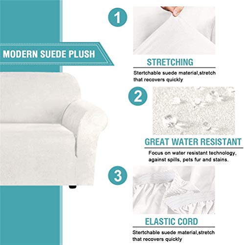 LINGKY Fodera per Divano in Velluto Universale, Copridivano in Velluto Elasticizzato per Divano A 1/2/3/4 Posti, Idrorepellente, Vari Colori, Pelle & Scamosciato (Avorio,2 posti(122-172 cm))