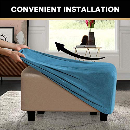 LINGKY Fodere Per Pouf Elasticizzate In Velluto Fodere Per Poggiapiedi Per Poggiapiedi Da Salotto, Fodere Per Mobili Con Morbido Tessuto In Morbido Velluto Spesso Spesso (Blu pavone,X-Large)