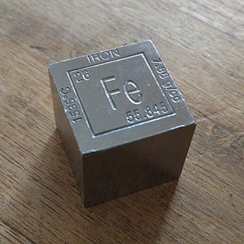 Lingotto/fermacarte dell'elemento chimico Ferro"Fe" da 8 once (circa 250 grammi) a forma di cubo, con design e dati citati dall'elemento chimico