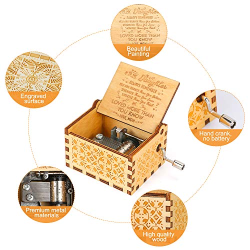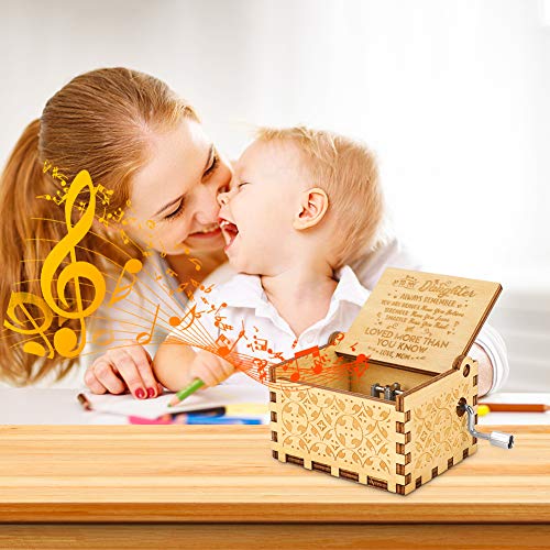 LINGSFIRE Carillon in Legno, You Are My Sunshine, Regalo per la Figlia, Carillon a Manovella Vintage in Legno Scatola Decorativa intagliata Antica Regalo di Compleanno di Natale (da papà a Figlia)
