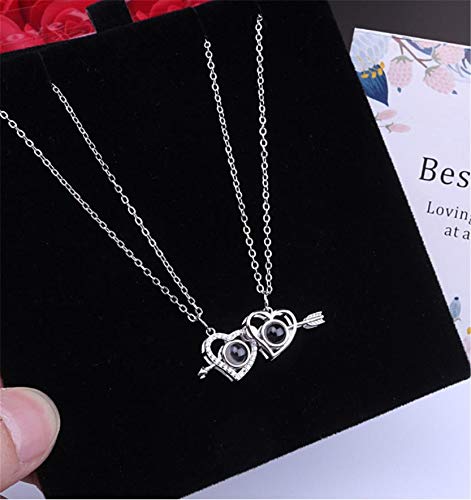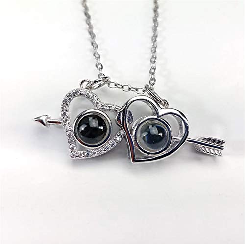 100 Lingue Diverse Ti Amo Collana di proiezione Collana di Foto Personalizzata Collana Personalizzata con Ciondolo a Freccia(Colore Argento Completo 18)