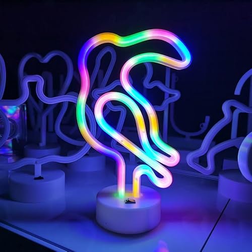 LINJIA Neon Light Sign, LED Neon Sign con Holder Base Lampade da Tavolo, Batteria/USB Neon Luci per Room Party Table Art Segni decorativi (Pappagallo colorato)