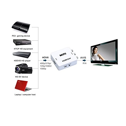 Link-e ®: Adattatore Convertitore HDMI 720P 1080P HDTV verso AV RCA composito CVBS per PS3, PS4, Xbox360, Xbox One, VCR, DVD, Camera, videoprojecteur...