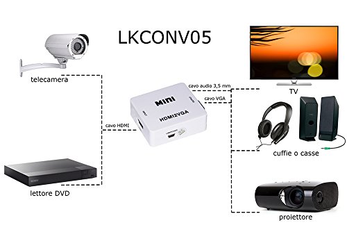 LINK LKCONV05 Mini Convertitore HDMI a VGA per 1 Dispositivo HDMI con Video VGA