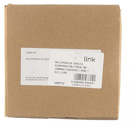 LINK LKMPT02 Multipresa da Tavolo a Scomparsa con 2 Prese 16A Femmina ITA/Schuko, 1 Rj45, 1 Rj11, 2 USB, nero