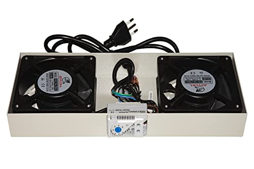 LINK Modulo 2 Ventole con Termostato per Armadi, Rack a Muro, Grigio