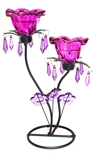 Link Products Doppio in metallo e vetro portacandela viola con free T luci