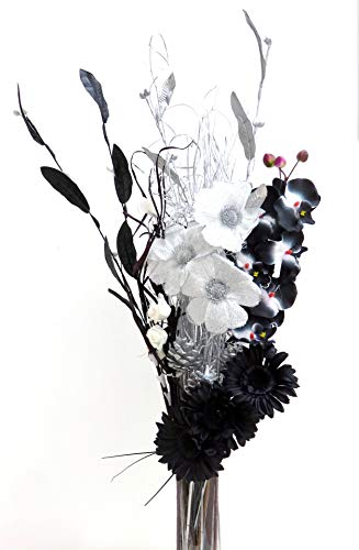 Link Products - Mazzo di fiori misti, secchi e artificiali, altezza 85 cm, pronto da inserire in un vaso, realizzato nel Regno Unito Silver & Black