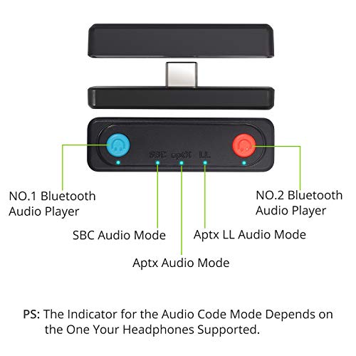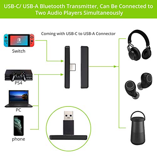 【Trasmettitore Bluetooth di Tipo C】 Compatibile con Switch, Switch Lite, PS4, PC, telefoni Android, Questo Può Essere Collegato a Ricevitori Bluetooth, Auricolari Air Pod, Cuffie Bluetooth Wireless e Altoparlanti Bluetooth, anche con USB-C a USB- A Connettore per un Comodo Utilizzo. (Può Essere Collegato a Due Lettori Audio Contemporaneamente)
