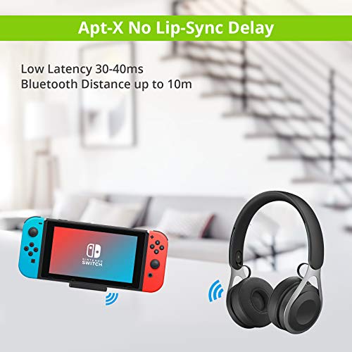 【Apt-X No Lip-Sync Delay】Questo Adattatore per Trasmettitore Audio Bluetooth 5.0 Adotta Chip di Fascia Alta, Supporta la Tecnologia Apt-X, Bassa Latenza 30-40 ms, Distanza di Trasmissione fino a 10 m Senza Ostacoli. Più Vicini Sono i Dispositivi, Minore è il Ritardo. Gli Utenti Possono Godersi il Vero Suono Durante il Gioco.