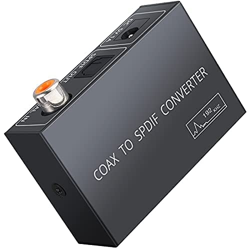 LiNKFOR Convertitore Coassiale a SPDIF 192kHZ Supporta LPCM 2.0 DTS Adattatore Convertitore Audio Digitale da Coassiale a Ottico con 1.2m Cavo Coassiale Adapter Coassiale a Toslink con 1m Cavo Ottico