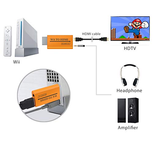 LiNKFOR Convertitore Wii a HDMI 1080P con Jack 3.5mm Audio Convertitore Video Supporta NTSC PAL con HDMI Cavo 1M Adattatore Wii HDMI per Nintendo Wii NON Wii Mini - Arancione