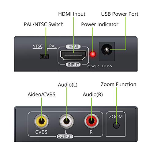 【Elaborazione Video Avanzata】 Adotta HDMI 1.3 e Funzione di zoom ZOOM, Gli Utenti Possono Godere di Una Migliore Luminosità dell'Immagine / Contrasto / Colore e Alta Definizione del Segnale HDMI Tramite Interfaccia CVBS.Inoltre, Zoom dell'immagine CVBS in Uscita per Adattarsi allo Schermo TV di Diverse Dimensioni, in Modo che l'immagine non Superi il Bordo del Display TV e Possa Essere Visualizzata più Chiaramente (Può Solo Trasferire il Segnale Video, Non Può Migliorare la Qualità del Video).