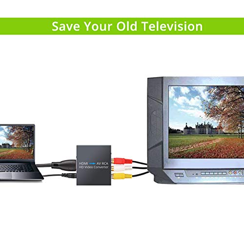 【HDMI a AV RCA】Questo Convertitore da HDMI a AV Consente di Convertire il Segnale Video HMDI o il Segnale Audio in Segnale Video Composito AV (CVBS) e Segnale Audio Stereo L / R, Mentre Supporta Segnali Collaterali del Sistema, PAL e NTSC, Compatibile con TV, VHS VCR, Registratori DVD ecc.