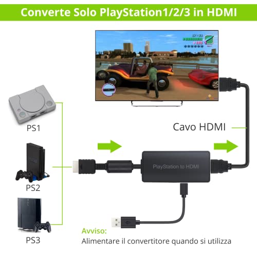 【Convertitore da PlayStation a HDMI】Converte il Segnale RGB Analogico dalla Sua PS1, PS2 o PS3 al Suo Nuovo HD TV / HDMI Monitor Moderno e Intelligente.