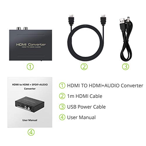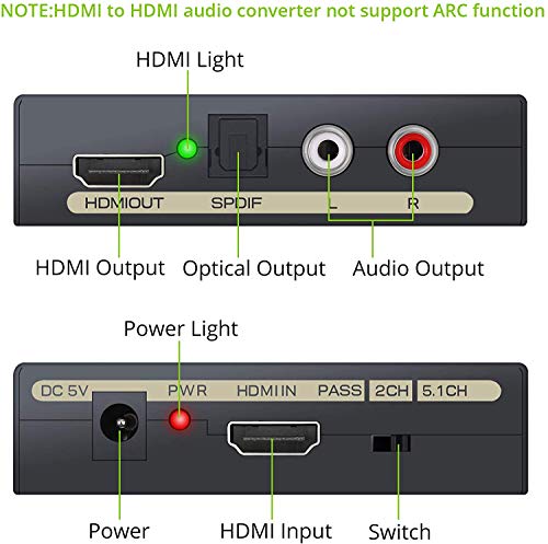 【4K HDMI Estrattore Audio】Questo HDMI a HDMI Estrattore Audio, Può Collegare la Sorgente del Segnale ad Alta Definizione a un Singolo Display ad Alta Definizione. Può Soddisfare l'immagine Ideale di HDTV, Consentendo di Godere di Immagini di Visualizzazione di Qualità Superiore. Nota: HDMI ARC (Canale di Ritorno Audio) Non è Supportato.