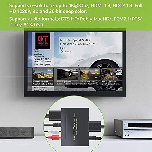 【4K 3D Video Risoluzione Alta】Questo HDMI Convertitore Audio Supporta Risoluzioni fino a 4K @30 Hz, HDMI 1.4, HDCP 1.4, Full HD 1080P, 3D e Colore Profondo a 36 bit. I Formati Audio Supportati Includono DTS-HD / Dobly-trueHD / LPCM7.1 / DTS / Dobly-AC3 / DSD.