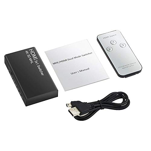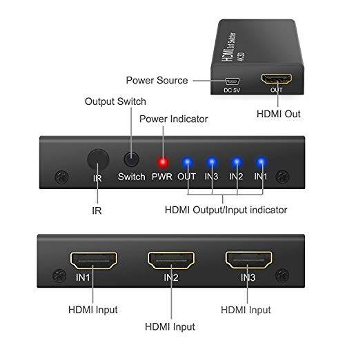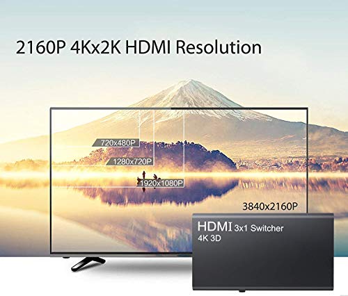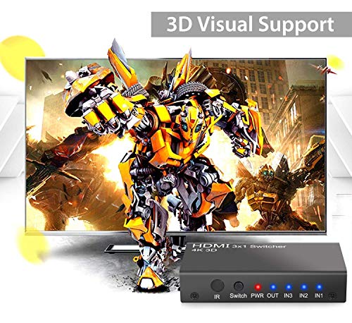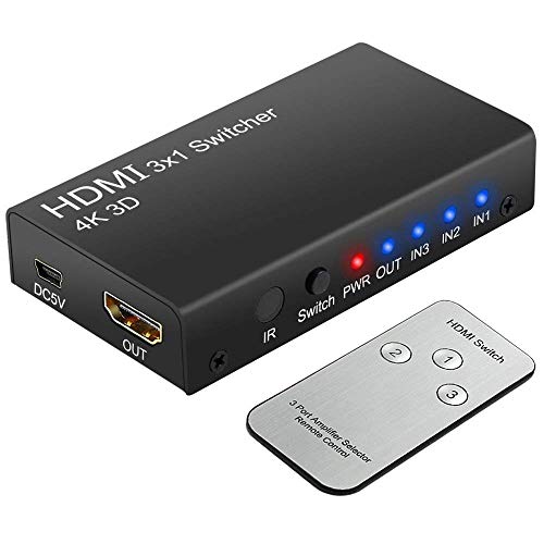 LiNKFOR HDMI Switch Commutatore HDMI 3 Ingressi 1 Uscita 4K x 2K con IR Wireless Telecomando per Apple TV BLU-Ray Player PS4 Cellulare Mobile HDTV Proiettore Nero