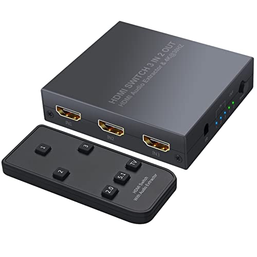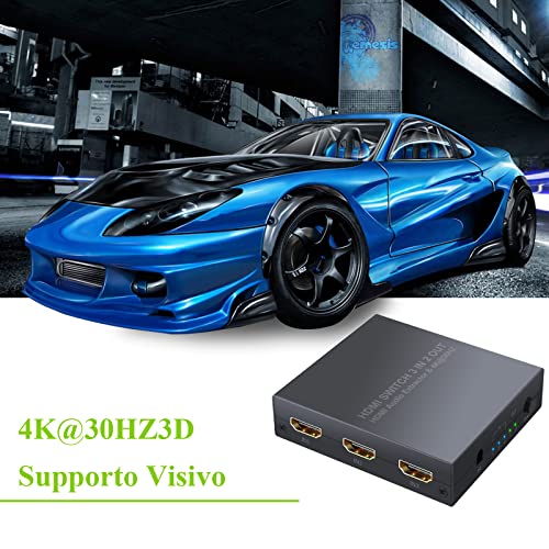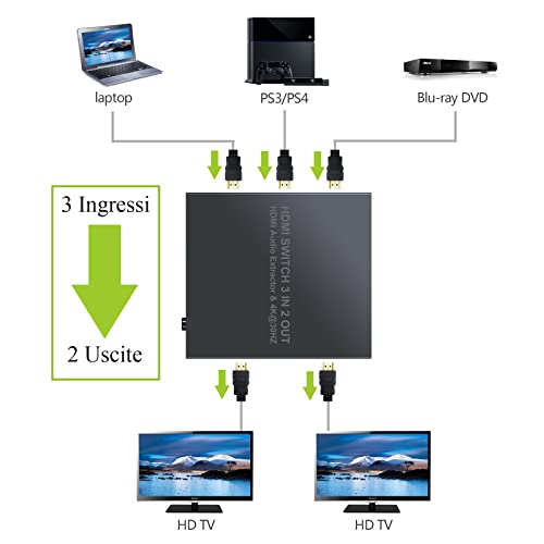LiNKFOR 4K HDMI Switch 3 In 2 Out con IR Telecomando + HDMI Audio Extractor con Ottico e 3,5mm Interfaccia HDMI Splitter Audio Supporta 4K 3D HDMI 1.4 Compatibile con HDTV Monitor DVD Lettore