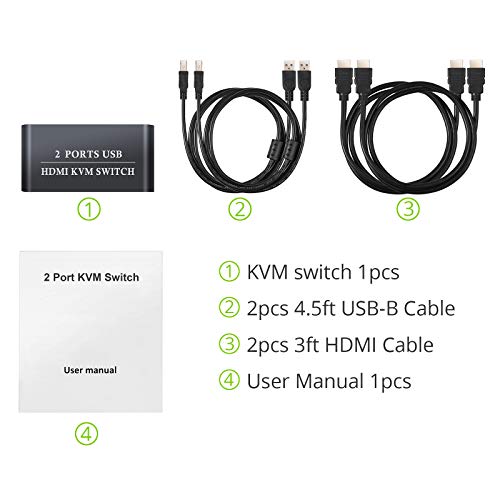 LiNKFOR KVM Switch 2 in 1 out con 1m Cavo HDMI e 1.4m Cavo USB KVM HDMI Switch 2 Porte Supporta 4K @30Hz e 2computer Condividono un Monitor per Win7/8/10/XP/Vista Sistema Mac PS4 Console di Gioco