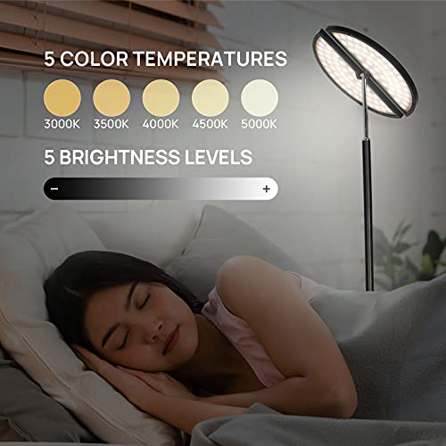 Linkind Dimmerabile LED Lampada da Terra, Lampade Salotto 225° Luminescente con 5 Livelli di Temperatura di Colore (3000K-5000K), Piantana con Telecomando e Controllo Tattile (Nero)