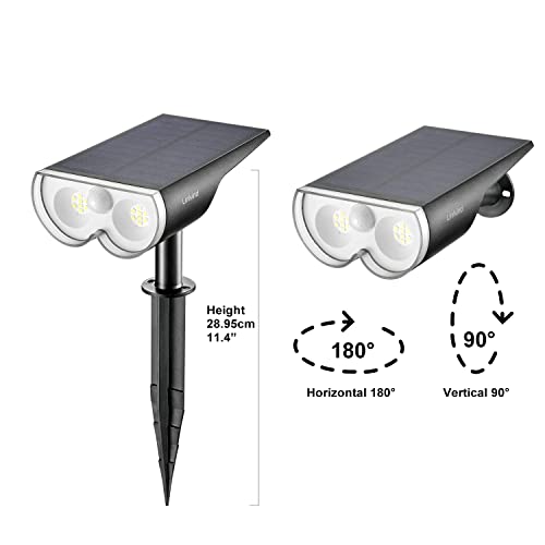 【Super luminosità e sensore eccellente】 Faretto solare per paesaggio Linkind con 16 perline LED, che forniscono un'illuminazione ideale con max. Fornisce 650 lm di emissione luminosa 6500K. Il sensore di movimento con la sua elevata precisione e sensibilità offre un angolo di rilevamento di 120 gradi e un raggio di induzione di 8 m.