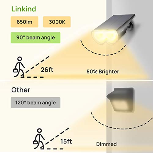 ☆ Super luminoso con 16 LED ☆: i faretti solari Linkind ad alta luminosità e un angolo del fascio di 90 gradi generano un'emissione luminosa fino a 650 lm, il 50% in più rispetto ad altri comuni faretti a LED. Angolo regolabile della luce e del pannello solare di 180 gradi in orizzontale e 90 gradi in verticale.
