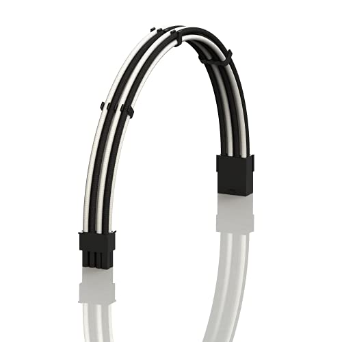 LINKUP - AVA 50cm PCI-e 8 (6+2) pin GPU Cavo di Prolunga per PC Personalizzato con Guaina Intrecciata per Alimentatore PSU con Pettini┃Design Robusto e Rigido┃Confezione Singola┃500mm - Bianca Nero