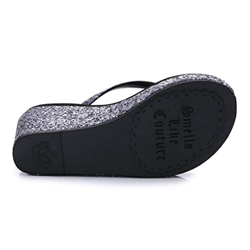 LINNUO Pantofole Donna Zeppa Infradito Estive con Tacco Sandali Piattaforma Casual con Paillettes Ciabatte da Spiaggia Mare Donna