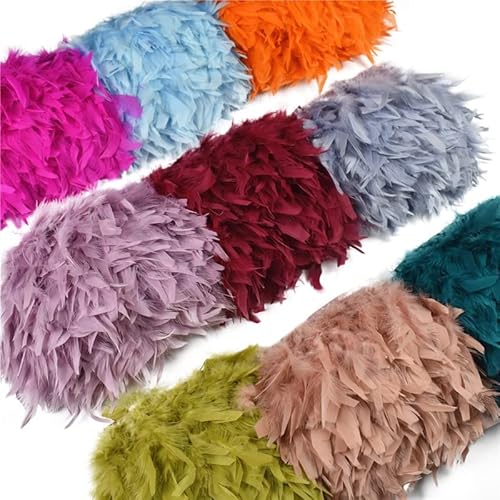 LINOC 2 Metri Soffici Piume di Tacchino Trim Frange per I Vestiti Nastro Piuma su Nastro Decorazione di Nozze Accessori per L'artigianato