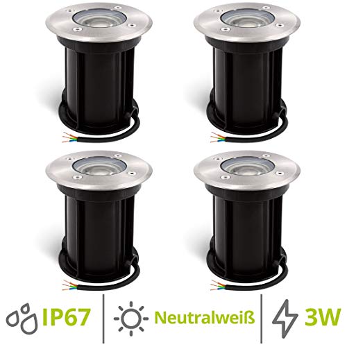 Lampada da incasso a pavimento resistente alle intemperie, con lampadina LED GU10 (3 Watt, bianco neutro) e cavo di collegamento a tre fili integrato