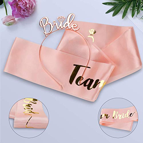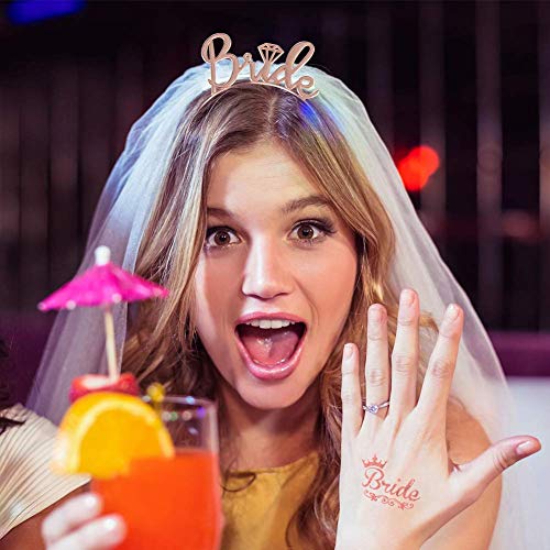 【Accessori per la doccia nuziale】1pz velo bianco con pettine, fascia in oro rosa 1pz, 1 pezzo in raso oro rosa 1pz, 1pz. Da sposa a rosetta distintivo, 1pz tatuaggio temporaneo.