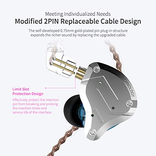 Auricolari ibridi 4BA + 1DD e unità dinamica magnetica. La versione Pro degli auricolari KZ ZS10 dispone di gusci bilanciati auto-personalizzati, due driver 30095 per i toni alti e due driver 50060 per quelli medi. I bassi sono più forti. Le frequenze alte sono estese oltre i 40 kHz. Adotta la seconda unità dinamica magnetica doppia Tesla. La forza di trasmissione è raddoppiata, l'efficienza elettroacustica è migliorata, i bassi sono più forti e più intensi rispetto a quelli dei normali driver dinamici magnetici.