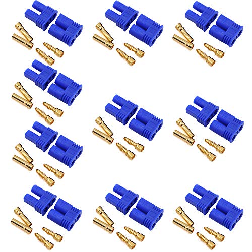 LinsyRC 10 Set Connettore Batteria EC2 Connettore Maschio Femmina Proiettile Spina a Banana 2MM 2.0MM Placcato Oro per Batteria Lipo RC