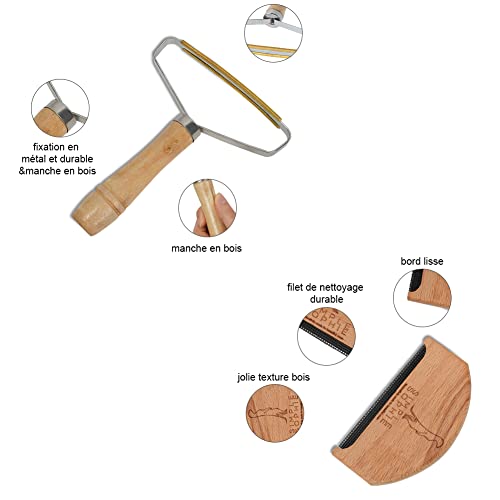 Materiali di alta qualità e durevoli: questo detergente per radici è realizzato in legno naturale e lame metalliche di alta qualità, ecologico, resistente e abbastanza affilato per l'uso. 100% atossico ed ecologico. Il dispositivo di rimozione dei pelucchi portatile è progettato ergonomicamente e dotato di un manico in legno facile da impugnare per garantire il massimo comfort