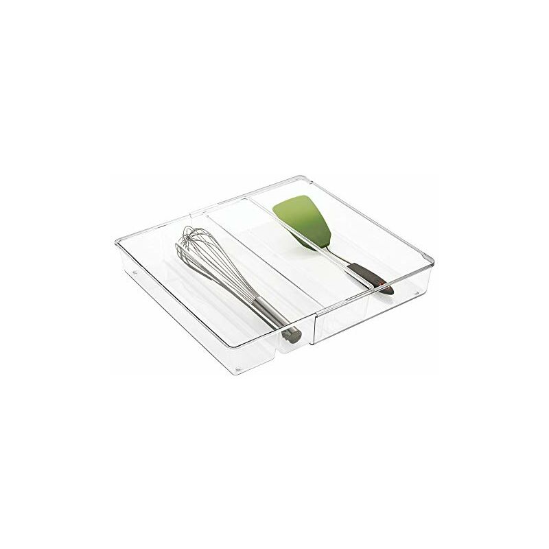 Interdesign Linus Portaposate da Cassetto, Separatori per Cassetti in Plastica Senza Bpa con 4 Scomparti Lunghi e Parte Estraibile, Trasparente 41x30.5x7.5 cmStyle: Organizer extralarge espansibile