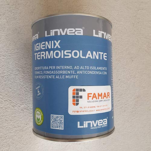 Linvea Igienix Termoisolante Bianco 1 Lt. Idropittura Per Interni Ad Alto Isolamento Termico, Fonoassorbente, Anticondensa, Resistente Alle Muffe