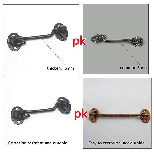 LINVINC Gancio e Occhio - Gancio Cabina Chiusura a Occhiello Acciaio Inox Chiavistello con Gancio per Porta Finestre Cabina, Nero / 75mm + 100mm + 150mm + 200mm