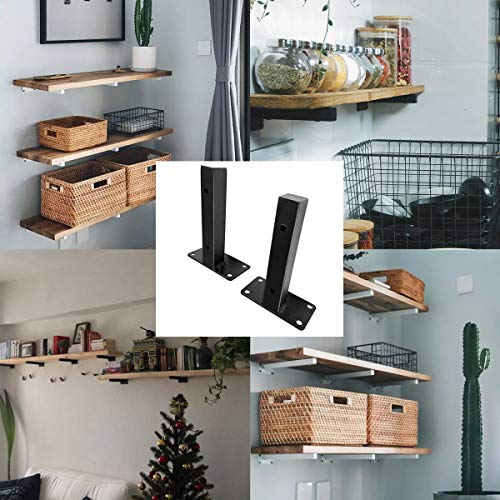 LINVINC Staffe Per Mensole A Tubo Quadrato - 2 Pcs Staffe Per Mensole Galleggianti Per Carichi Pesanti Per Mensola A Muro, Libreria, Nero, 15cm