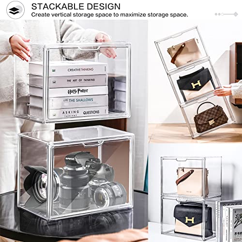 LINYAPRY Confezione da 4 organizer per borse in plastica trasparente per armadio, scatola espositiva in acrilico per borse, scatole impilabili con porta magnetica per borsa, pochette, portafoglio,