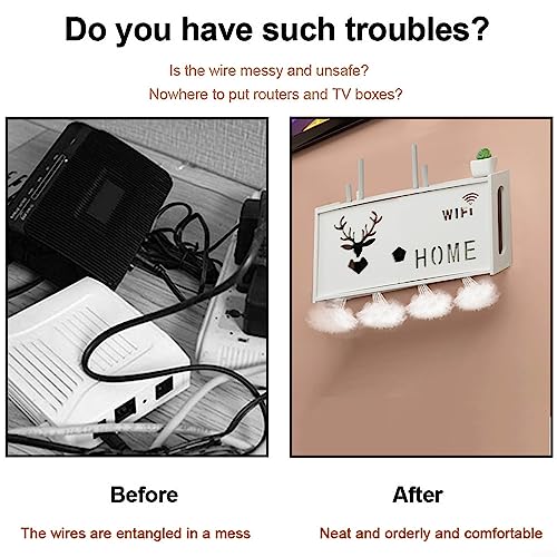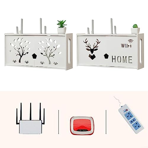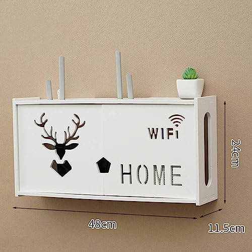 Lioaeust Scatola portaoggetti WiFi da parete, grande rack wireless per router set-top box router rack senza punzonatura scatola portaoggetti doppia porta, 48 x 24 cm (A)