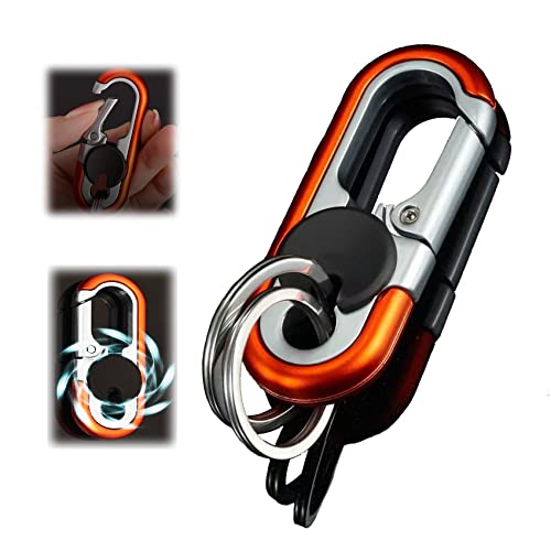Lioncool Men's Car Key Chain,Solid Color Double Ring Key Chain,Key Chain with 2 Key Rings, Hanging Metal Belt Loop Business Keychain for Men and Women (Orange), Taglia unica