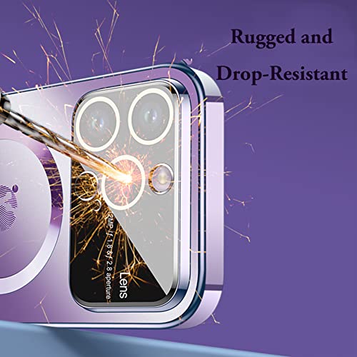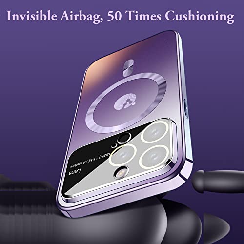Lioncool Luxury Matte Magnetic AG Case Magnetic Charging Case for iPhone 14/13/12/11Pro Max, AG Glass Large Window Lens Protection Magnetic Frosted Case (Purple,for iPhone 14 PRO)