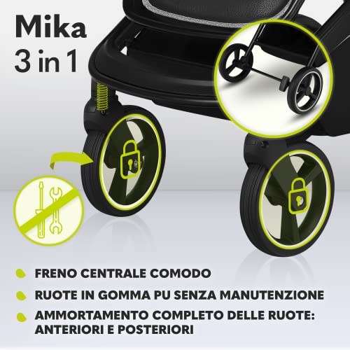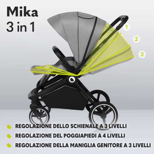 MIKA 3IN1: Un'ampia gamma di regolazioni, peso basso, dimensioni compatte dopo la chiusura e un ricco set di accessori renderanno estremamente confortevoli le passeggiate e i lunghi viaggi sia per il bambino che per il genitore